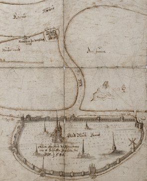 Befestigung der Stadt Neuss mit Zufluss der Kehl vom Rhein; Manuskriptplan, 17. Jahrhundert -