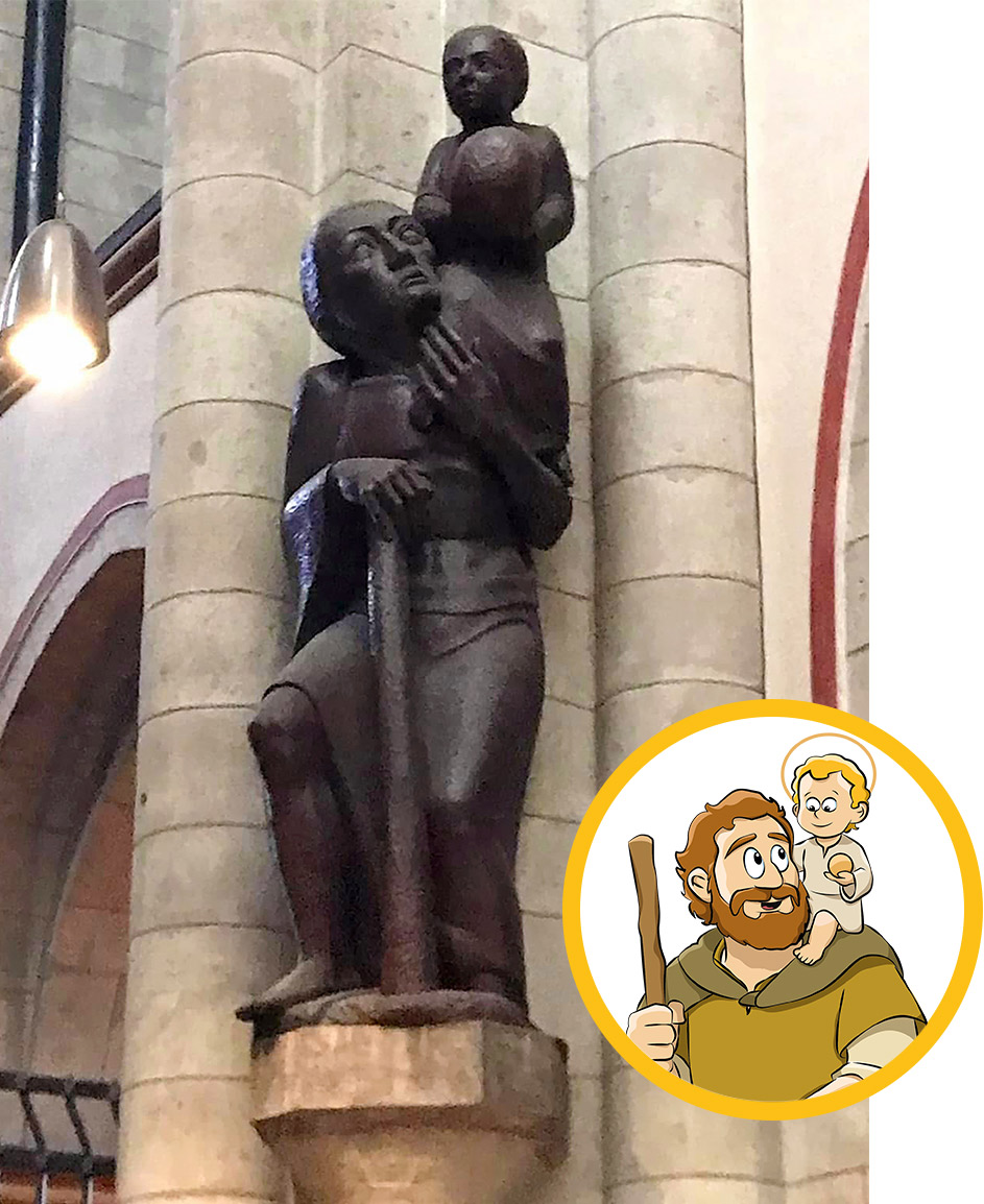 Das Standbild des Heiligen Quirinus steht stolz auf der grünen Kuppel der Kirche. Es ist ein römischer Soldat mit Helm, Schild und Fahne! Quirinus lebte schon vor über 1900 Jahren im alten Rom und bewachte dort die gefangenen Christen. – Zu dieser Zeit war es also gefährlich, Christ zu sein! Unter den Gefangenen befand sich auch Papst Alexander. Eine Legende erzählt, dass Alexander die kranke Tochter von Quirinus durch ein Wunder geheilt hat. Deswegen ist Quirinus dann auch Christ geworden, obwohl das strengstens verboten war. Schließlich wurde er sogar für seinen Glauben getötet. – Diesen Mut von Quirinus haben alle bewundert und er wurde ein berühmter Heiliger.