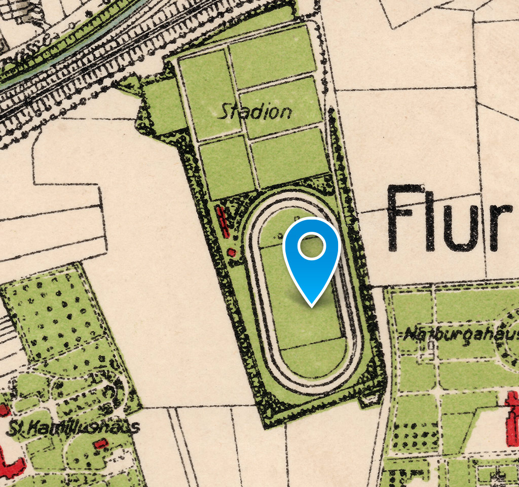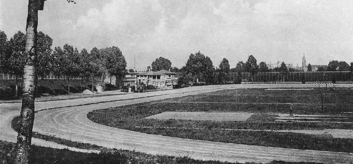 Jahnstadion mit Verwaltungsgebäude Ausschnitt einer Postkarte, um 1930 -