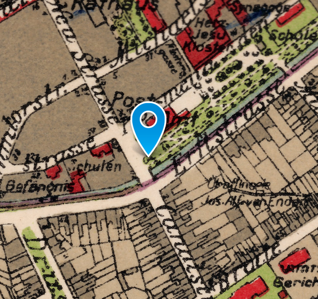As early as 1899, efforts to honour Schwann in his hometown resulted in a memorial plaque at his birthplace at Büchel 18, followed by the naming of a street in his honour in 1908. The initiative to erect a memorial came from municipal councillor and medical officer Franz Rheins. It was funded by donations from Neuss residents as well as from physicians, natural scientists and universities outside the city. The city contributed 500 marks. A prominent spot on the promenade, laid out on the former city fortifications at the beginning of the 19th century by court gardener Maximilian Weyhe, was chosen for the site. It depicts the researcher seated in a ‘Belgian professor’s coat’ and has been a listed monument since 2005.
