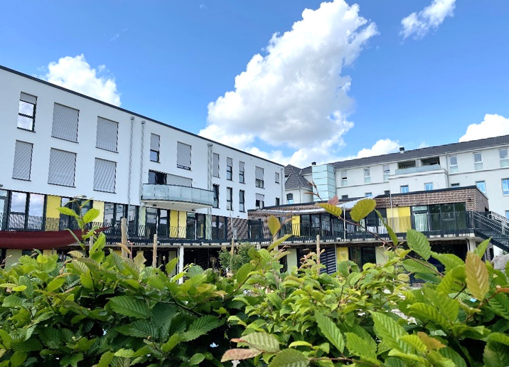 Bestandteile des Generationen-Quartiers mit insgesamt 234 Wohneinheiten in unterschiedlichen Segmenten sind ein Seniorenheim mit 80 Wohnplätzen, eine Tagespflege-Einrichtung, ein Nachbarschaftstreff mit Café und Gemeinschaftsraum und ein Kindergarten.