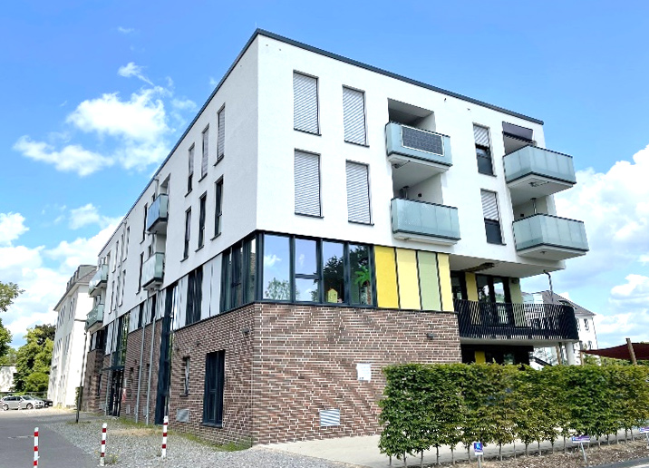 Gut 40 Mietwohnungen und eine WG-Wohnung mit 10 Apartments für Menschen mit Demenzerkrankung entstanden in 4 neuen Geschosswohnungsbaun. Ein benachbartes Gewerbegebäude wurde zu 12 Wohnungen umgebaut. Insgesamt 36 öffentlich geförderte Wohnungen.