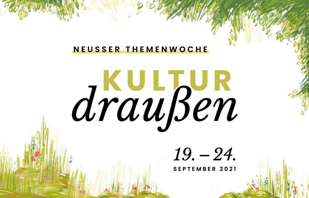 Von Sonntag bis Freitag, 19. bis 24. September 2021, öffnen die Kulturinstitute der Stadt Neuss während der diesjährigen Themenwoche ihre Türen und erobern den öffentlichen Raum für Kunst und Kultur, Musik, Theater, Kunst und mehr: Mit Engagement und Kreativität wurde ein abwechslungsreiches Programm für die Themenwoche erarbeitet. Unter dem Motto „Kultur draußen“ finden rund 20 Veranstaltungen Stadtgebiet statt. Mit dem Clemens Sels Museum Neuss, der Dependance Feld-Haus – Museum für populäre Druckgrafik, der Volkshochschule Neuss, dem Theater am Schlachthof, der Musikschule, dem Stadtarchiv, dem Kulturforum Alte Post, der Stadtbibliothek und der Tourist Information Neuss / Neuss Marketing nehmen insgesamt neun Einrichtungen an der Themenwoche teil.