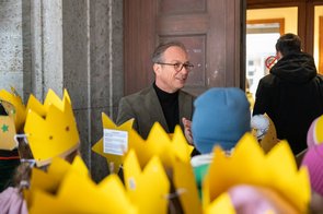 Sternsinger*innen bringen Segen am Neusser Rathaus an