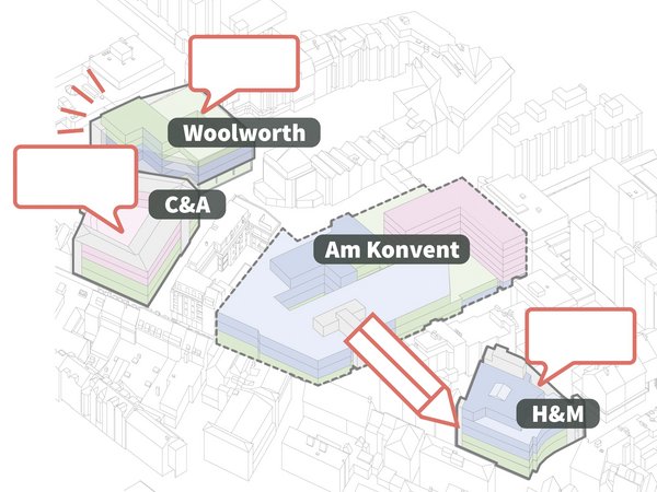 Die Studie berücksichtigt dabei auch aktuelle Entwicklungen, wie die Schließung der Woolworth-Filiale an der Niederwallstraße sowie die Verlagerung der Stadtbibliothek in die Immobilie am Konvent.