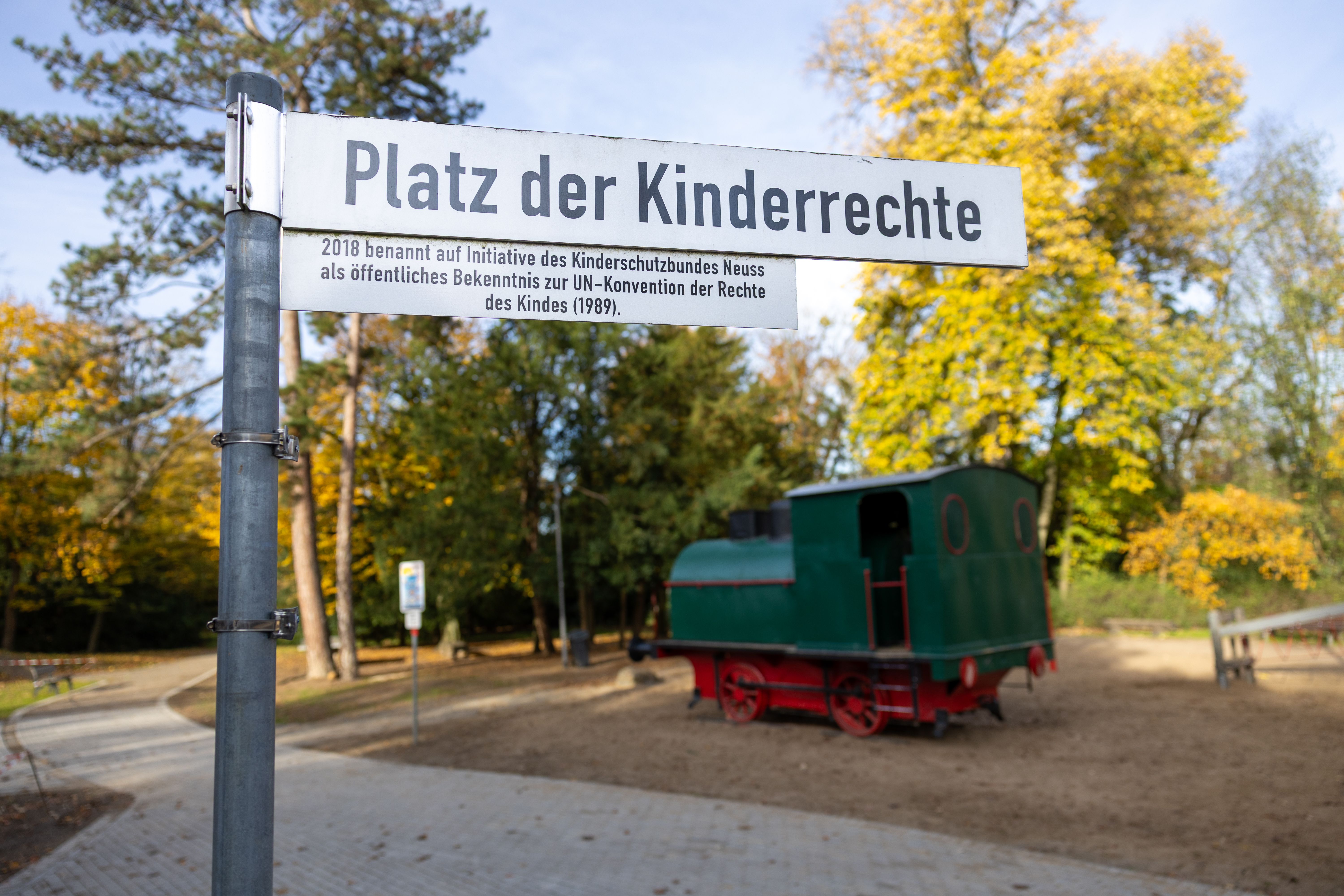 Am Platz der Kinderrechte im Neusser Stadtgarten sind die Arbeiten weitgehend abgeschlossen. Die Maßnahme konzentrierte sich auf die angrenzenden Frei- und Sportflächen. Die rund 700 Quadratmeter große, zuvor stark mitgenommene Asphaltfläche im Zentrum des Platzes wurde vollständig zurückgebaut. Stattdessen entstanden neue Wegeverbindungen mit wassergebundener Wegedecke, naturnahe Vegetationsflächen und eine zentrale Platzfläche mit Baum. Diese neue Gestaltung verbessert das Mikroklima, lädt zu Picknick und Erholung ein und schafft mehr Raum für Begegnung direkt neben der Spielfläche. Auch das Hinweisschild auf den Platz der Kinderrechte sowie der beliebte Kinderbriefkasten des Neusser Kinderschutzbundes haben hier ihren neuen Standort gefunden. Ein besonderes Zeichen soll im Winter mit der Installation einer kommunikativen Rundbank gesetzt werden, die in Zusammenarbeit mit dem Kinderschutzbund entwickelt wurde und ab Frühjahr 2026 zum Austausch einlädt. Auch das benachbarte Basketballfeld wurde erneuert. Der Bodenbelag und der Basketballkorb wurden ausgetauscht, Markierungen im Stil eines 3x3-Streetballfeldes folgen noch. Insgesamt investierte die Stadt hier rund 200.000 Euro.